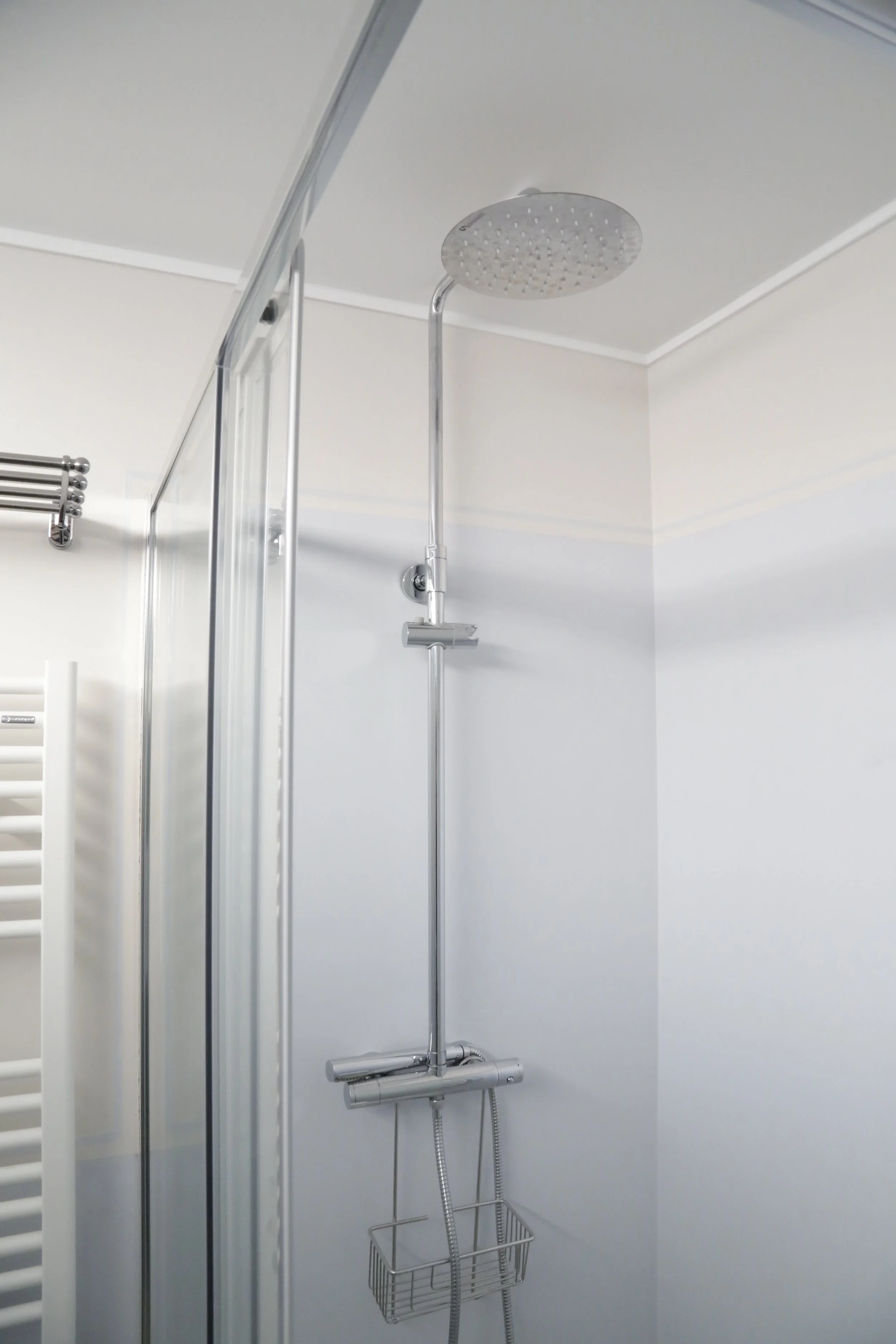 La zona soggiorno, caratterizzata da una grande vetrata, accoglie un comodo divano letto, una smart tv e una cucina completamente accessoriata con elettrodomestici e utensili di prima qualità. La camera da letto è un'oasi di pace e riservatezza, luogo perfetto per un riposo calmo e rilassato. Il bagno dispone di un box doccia e offre tutto il necessario per un soggiorno confortevole. La struttura vanta un grande terrazzo con tavolo, sedie, sdraio e un maxi lettino per prendere il sole, offrendo uno spazio suggestivo per trascorrere dei magici momenti all’aria aperta. In tutte le stanze sono presenti caloriferi e condizionatori.